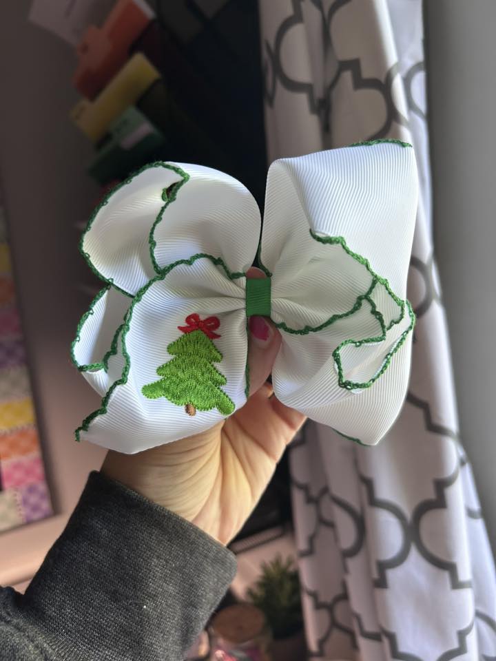 Christmas Tree Embroidered Bow