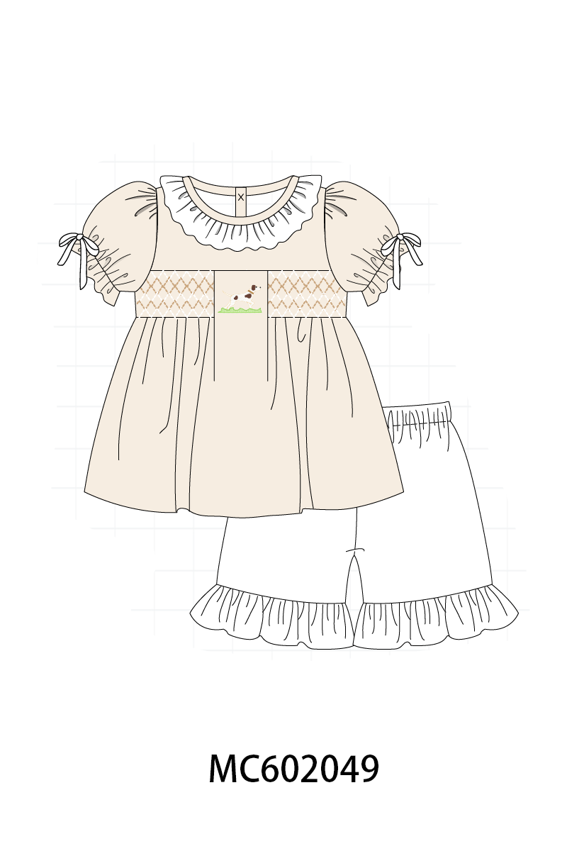 PO81 Blue puppy embroidery smocked collection