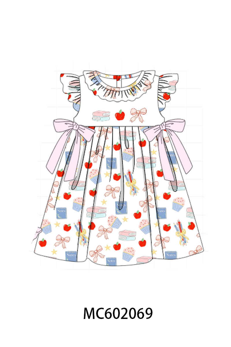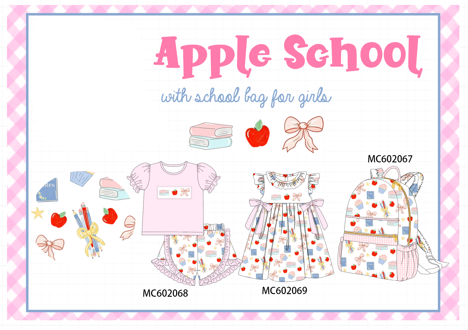 PO81 Pink back to school apple book bow embroidery collection