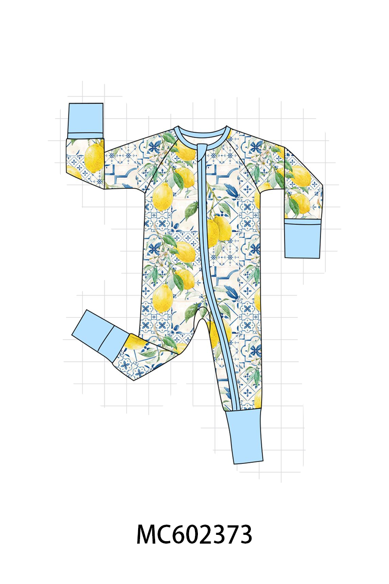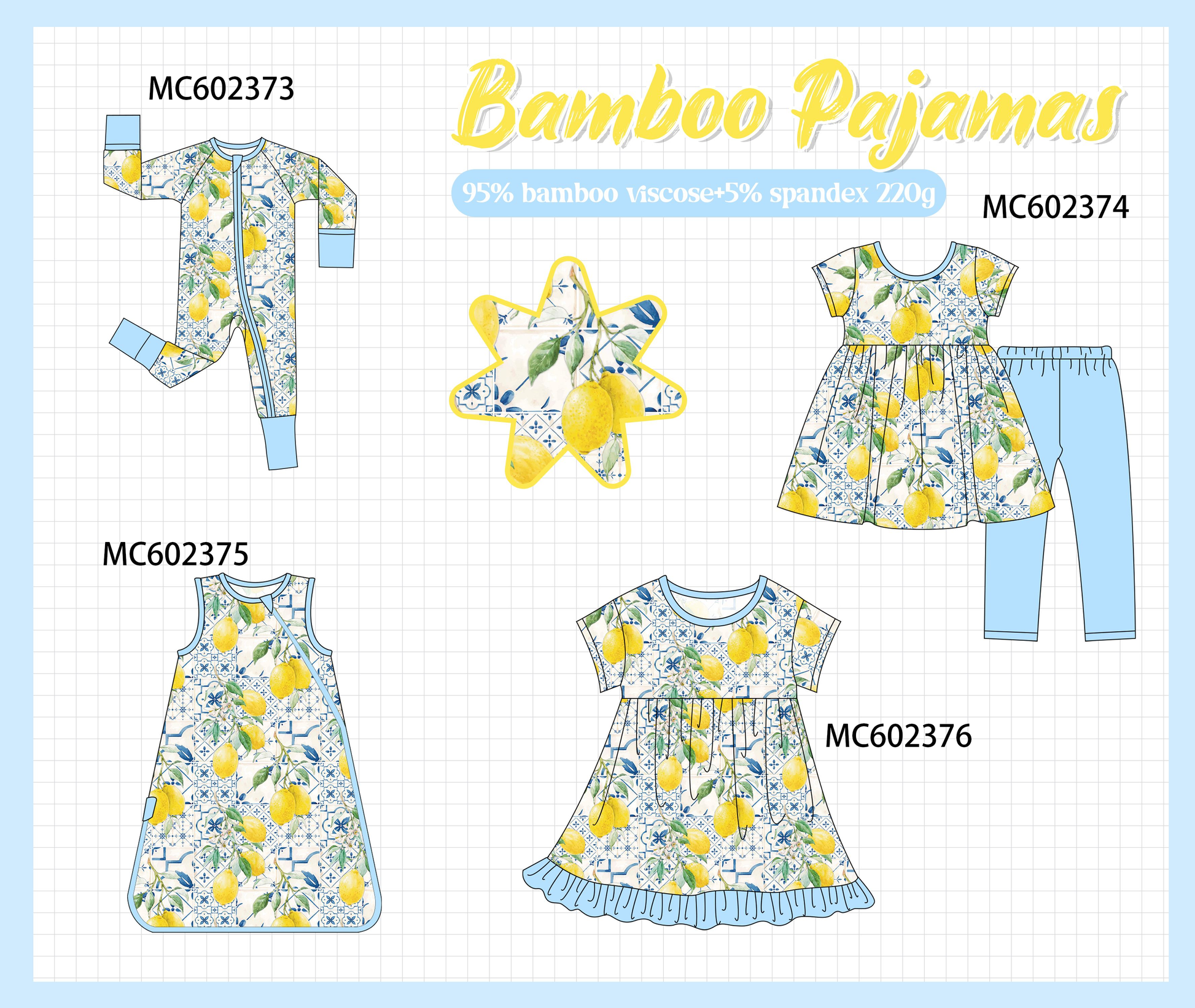 PO82 Blue lemon print bamboo pajama collection
