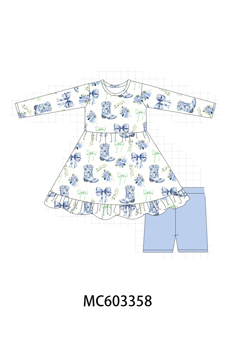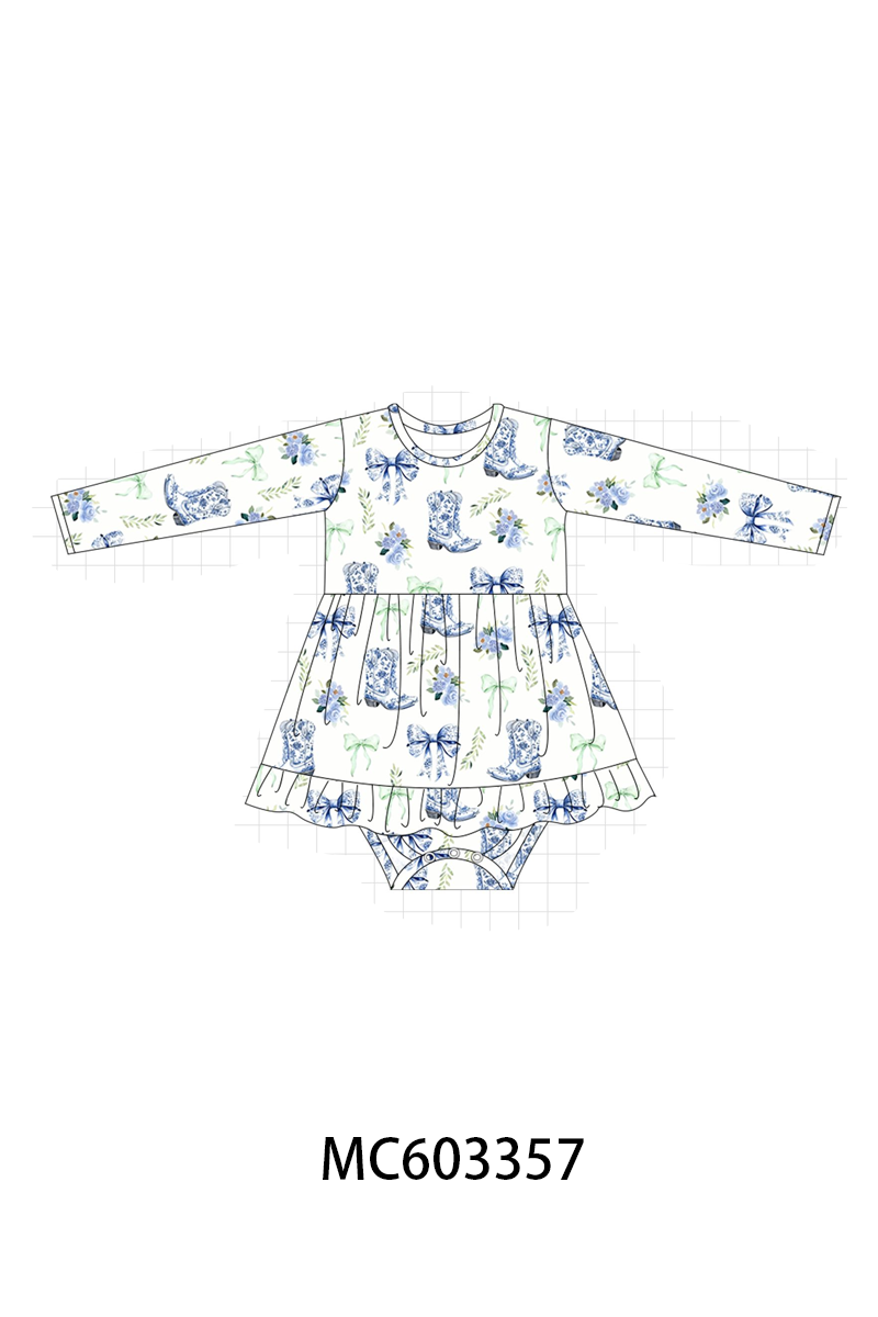 PO83 Blue bow boots bamboo collection
